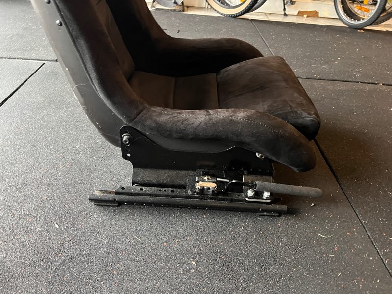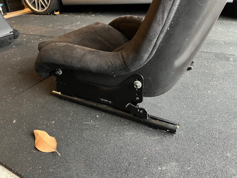This seat does not sit on the genuine factory CSL tilting seat rail, instead it is on the BMW factory manual sliders paired with USA made Brey Krause side mounts and anti submarine bar and slide adjuster. The seat is centred to the steering wheel perfectly and on a tilt angle and height similar to the factory CSL seats (it sits slightly lower)